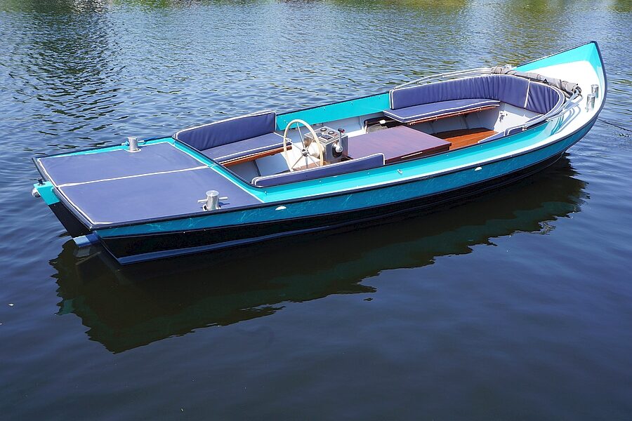 Stoere en robuuste stalen sloep gebouwd in 2008 door Scheepswerf Gebr. Bennik te Arnhem. Het vlak bestaat uit 5mm staal en de zijden uit 4mm staal en de sloep staat in een 2-componenten verfsysteem. De sloep is uitgevoerd met een hydraulisch stuursysteem, voorzien van 80ltr dieseltank, 44Ah startaccu en 140Ah huishoudaccu, acculader, omvormer, radio, LED navigatieverlichting, binnenverlichting, z.g.a.n. cabrioletkap met bijpassende parasol, etc. De sloep is ingericht met een rondzit in de punt die met passtukken kan worden omgebouwd tot een 2-persoons bed. In het midden een mahoniehouten gelakte motorkist, achterin een RVS stuurconsole met -stuurwiel en twee zitbanken, het achterdek kan met twee ligkussen als lounge/zonnedek worden gebruikt.