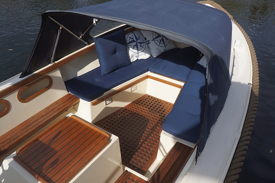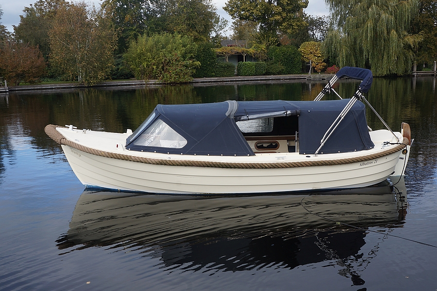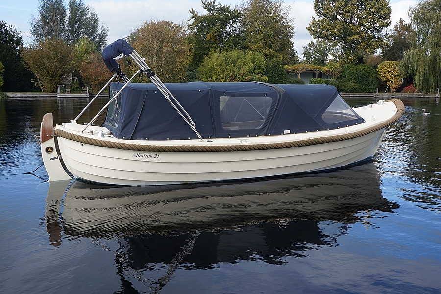 Zeer complete overnaadse spitsgatsloep uit 2000 aangedreven door een 4-cil Vetus dieselmotor en voorzien van een hydraulisch stuursysteem. De Albatros21 is voorzien van een weekend cabrioletkap en een biminitop, beide voorzien van rvs buiswerk, het volledige kussenset inclusief het uitneembaar zonnedek (recent gestoffeerd). De kuip en motorkist is afgewerkt met teakhout, op de vloer liggen uitneembare teakhouten blokroosters. De albatros heeft een 80ltr brandstoftank, met meter, 70Ah accu, OW-toilet, afneembare rvs zwemtrap, anker, elektrische bilgepomp, fenders, etc.